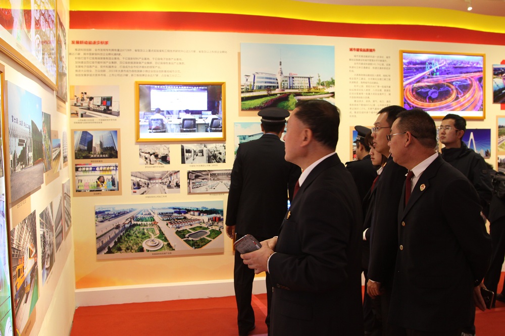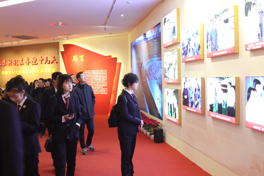 展厅摆放了大量记录党的十八大以来太原市经济建设、政治建设、文化建设、社会建设、生态文明建设和党的建设的图片。