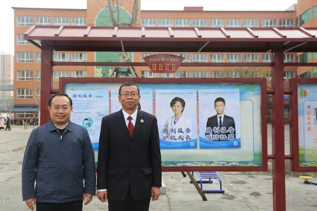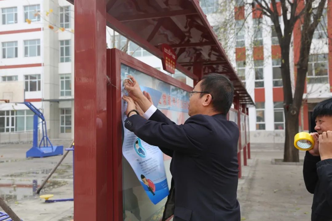 课后,郭庆军检察长与老师们在学校宣传栏中张贴了强制报告制度海报,持续开展普法宣传,推动强制报告工作走深走实,确保该项制度落地见效。
