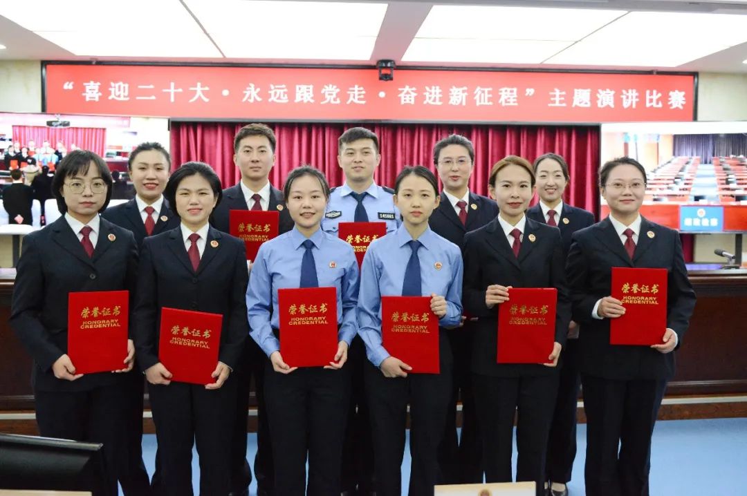 比赛中,11名年轻干警紧扣“喜迎二十大·永远跟党走·奋进新征程”演讲主题,结合自身工作经历,用生动的语言、真挚的情感,讲述身边的鲜活实例、感人事迹,诠释了铁检干警立足岗位默默无闻、爱岗敬业的无私奉献精神,展现出新时期铁检干警勇于担当、司法为民的精神风貌。选手们精彩的演讲将一个个铁检故事娓娓道来,感染了在场的每一名观众,赢得现场评委一致好评。