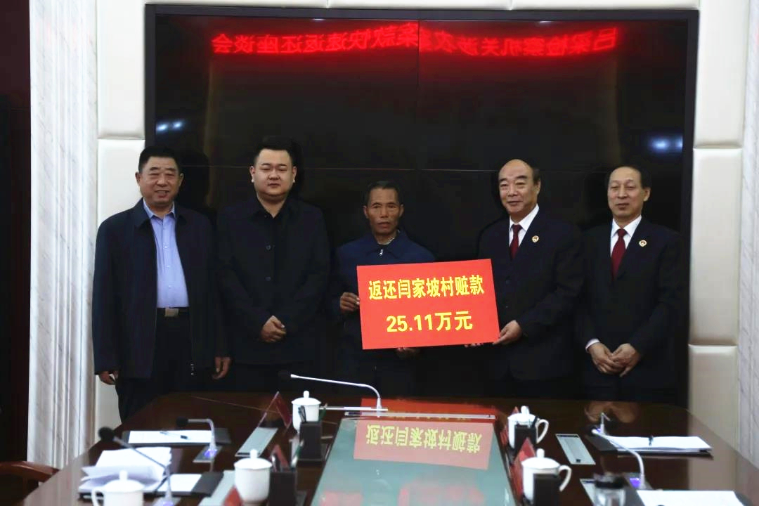 4月1日,吕梁市、离石区两级检察机关将闫家坡村原党支部书记、村委主任闫香耀利用职务便利侵占村集体的25.11万元返还闫家坡村委,同时,希望乡镇党委、村集体把涉案返还的款项切实用在乡村振兴上。同时,与离石区坪头乡政府、闫家坡村委召开座谈会,围绕检察机关支持和保障乡村振兴战略实施、助力巩固拓展脱贫攻坚成果同乡村振兴衔接,进行了深入的交流座谈。