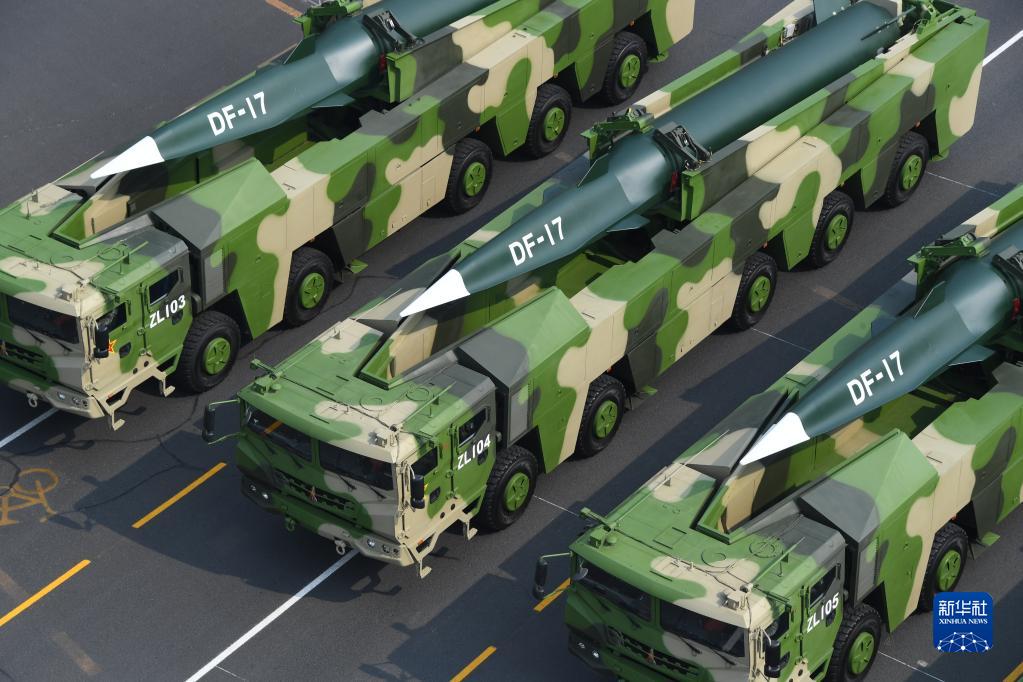 2019年10月1日上午,庆祝中华人民共和国成立70周年大会在北京天安门广场隆重举行。这是东风-17常规导弹方队。新华社记者 潘昱龙 摄