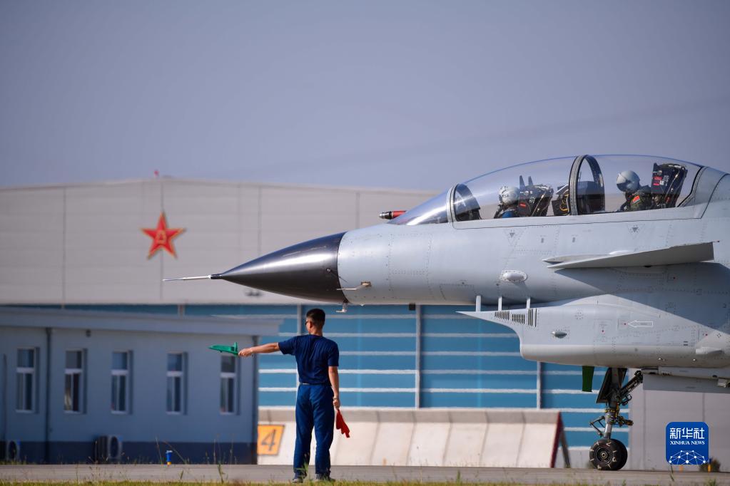 在空军石家庄飞行学院某旅机场,空军首批三代机飞行学员驾驶首批列装空军院校的歼-10战机准备起飞(2021年9月10日摄)。新华社发(李敏 摄)