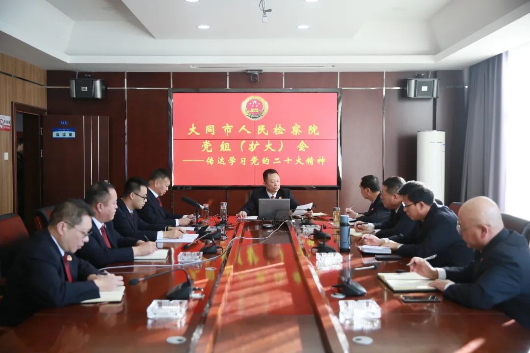 11月3日,大同市检察院召开党组(扩大)会议,传达学习了党的二十大、习近平总书记在延安、安阳考察调研和中共山西省委十二届五次全体会议精神,研究部署贯彻落实工作。党组书记、检察长郑黎明主持会议并讲话。