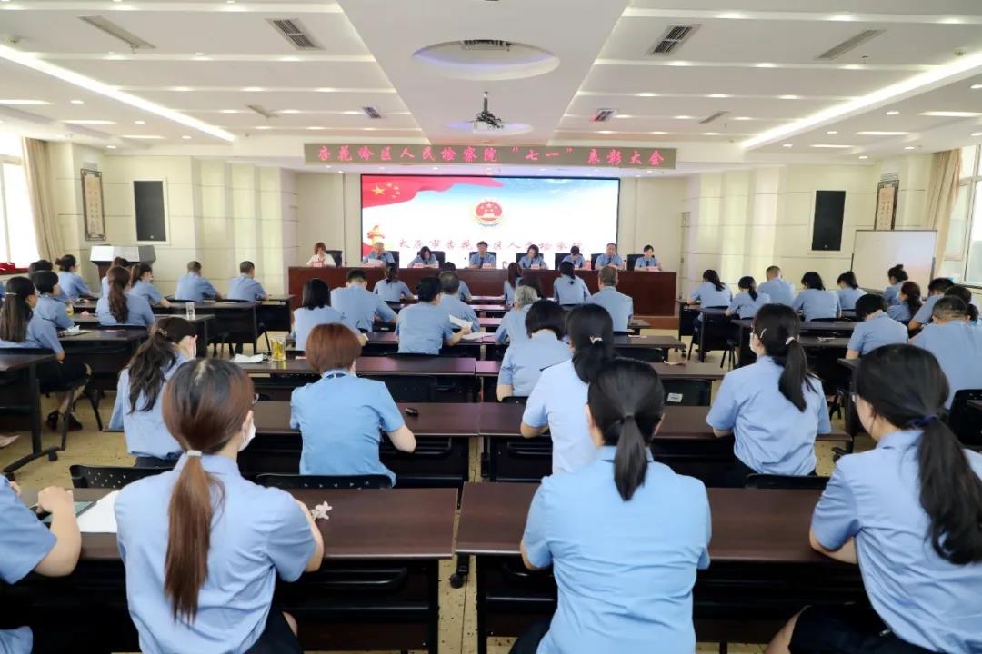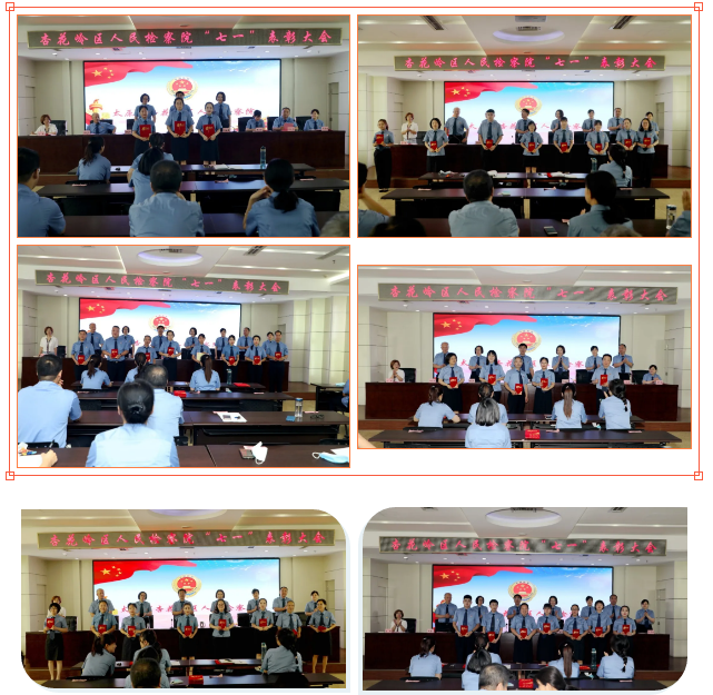 为庆祝中国共产党成立99周年,7月1日上午,杏花岭区院召开“七一”表彰大会,全体干警参加会议。副检察长许韶琛主持会议,党组成员、副检察长、机关党委书记田建涛对全院2019年度党建工作进行了总结。党组成员、政治部主任宁文志宣读了《关于表彰2019年——2020年度优秀共产党员、优秀党务工作者、先进党支部、文明家庭的决定》和《2019年度表彰奖励决定》,对优秀共产党员、优秀党务工作者、先进党支部、最美家庭、先进集体和个人予以表彰。