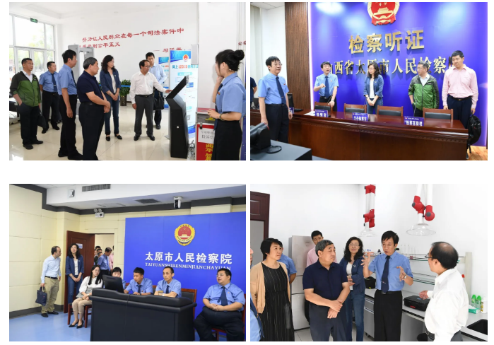 调研中,调研组一行参观了案件管理大厅、12309检察服务中心、检察听证室、办案工作区、司法鉴定中心实验室、同城数据中心,观看了《以大数据引领智慧检务建设》检察工作宣传片。现场观摩了检察业务数据分析、远程提讯、网上信访大厅等平台实时运行情况。