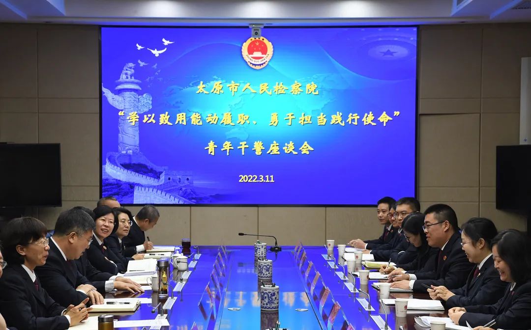 青春逢盛世、奋进正当时。为进一步强化培优力度、掌握思想动态、挖掘工作潜力、激发干事热情,促进青年干警将专业知识更好地转化为实践能力,2022年3月11日,太原市人民检察院组织青年干警代表召开以“学以致用能动履职、勇于担当践行使命”为主题的座谈会。市院党组书记、检察长马红彬参加会议并讲话。