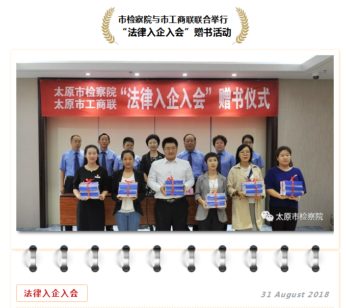 【入企入会】市检察院与市工商联联合举行 “法律入企入会”赠书活动