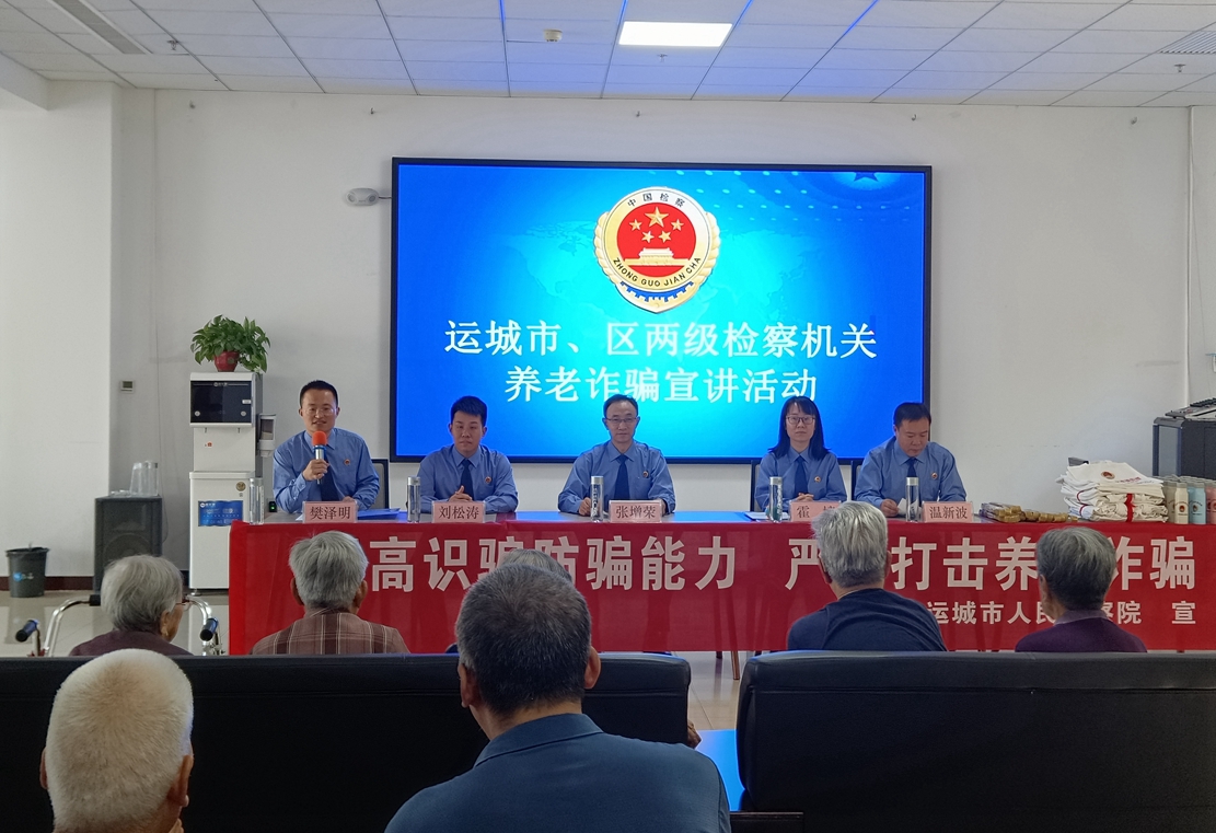 为深入推进打击整治养老诈骗专项行动,切实维护老年人合法权益,提高老年群体防骗识骗能力,9月23日,运城市人民检察院联合盐湖区人民检察院在凤凰金秋老年公寓开展了一场法治宣传讲座。三十余名老年人参加讲 座。